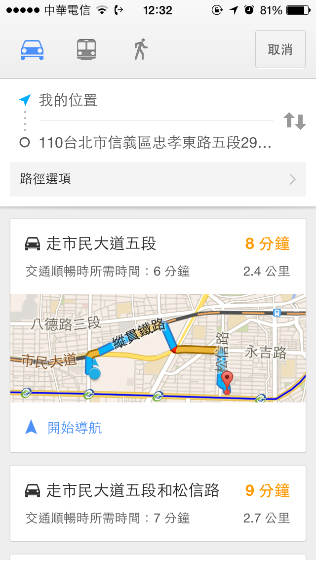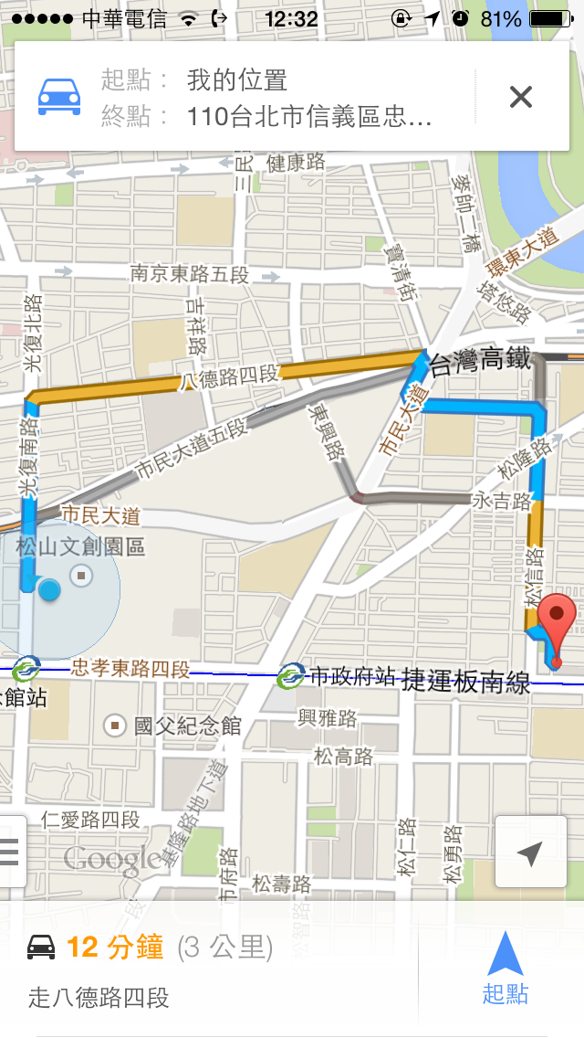 旅遊新聞 Google 地圖導航使用介紹(Google map navigation) 相信看完上一篇的介紹,大家已經對於 Google 地圖導航有了基本的認識。這篇我們將為大家介紹最重要的,也就是 Google 地圖導航要怎麼使用!不過目前台灣版的尚不支持街景服務。 下面以 ios 系統的 Google 地圖導航來做介紹: 首先需要先輸入所在的位置以及目的地,可以手動輸入,或是點選下面曾經搜尋過的位置▼ 輸入位置後,下方就會出現建議的路線,有可能會有多條可以選擇。上方也可以選擇交通工具▼ 點選路徑選擇,還可以增加像是避開高速公路等選項▼ 點選地圖可以進入地圖模式,看到完整地圖▼ 點選地圖上面路線,即可更換不同行徑路線▼ 按地圖下方路線部分,會出現接下來的路線資訊▼ 按開始即可進入導航模式▼ 點選下方有語音導航跟不同地圖顯示方式可以選擇▼ 選用衛星視圖看起來會長這樣▼ 看起來好像有點漏漏長,不過其實使用起來相當簡單便利!今天如果要去外地遊玩的話,不妨使用看看 Google 地圖導航吧!! Previous Article海外帶藥回台 超量超次要罰 Next Article來去美國!Google map 離線地圖 2014 年 06 月 06 日